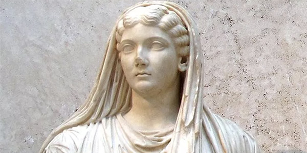 Le donne maritate non si fanno mai vedere in pubblico a capo scoperto, ma nascondono parte dei capelli con un lembo della stola, il drappeggiato abito da passeggio, o li raccolgono con fasce, le vittae. «Una benda trattiene le loro chiome annodate», scrive il poeta Tibullo.