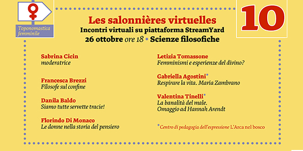 26 ottobre 2021: decimo appuntamento di Les salonnières virtuelles dedicato alle Scienze Filosofiche.