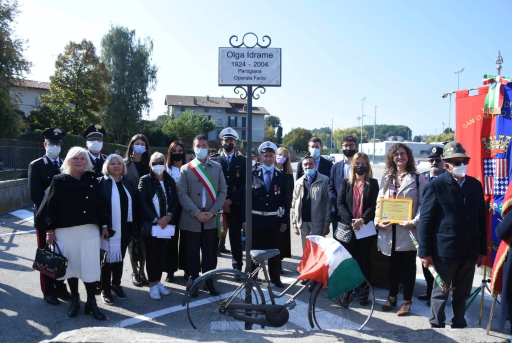 Nella stessa giornata del 10, a San Damiano d’Asti, si è tenuta l’inaugurazione dell’intitolazione della piazza alla partigiana Olga Idrame. Toponomastica femminile, rappresentata da Giovanna Cristina Gado (prima da sinistra guardando la foto) ha consegnato nella mani del sindaco Davide Migliasso la targa di “Comune amico”. Presenti autorità, associazioni, studenti e docenti, la presidente della Commissione per le pari opportunità della Provincia di Asti Bianca Marina Terzuolo (seconda da sinistra, nella foto) e la Presidente del Consiglio Comunale di San Damiano d’Asti Martina Guelfo (con in mano la targa, nella foto).