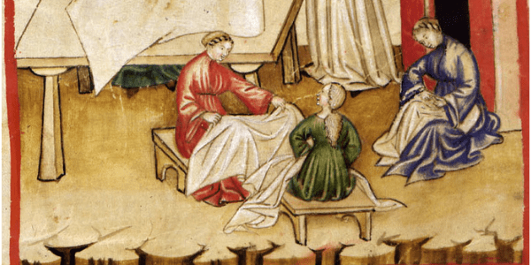 In copertina. Aspetti di vita quotidiana femminile. La lavorazione del lino (Tacuina sanitatis, XIV secolo. Particolare).