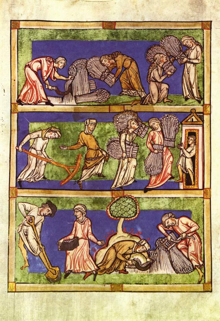 Anche se le mogli sono obbligatoriamente sottomesse all’autorità maritale, esse riescono a mantenere ancora certi diritti. Le contadine, le schiave e le serve in generale hanno bisogno del permesso e del consenso del loro padrone per potersi sposare; sono in vigore varie punizioni qualora non si rispetti una tale regola. Alla morte di un coniuge le vedove possono ereditare la proprietà quando hanno ancora dei figli minori o se vengono create disposizioni in tal senso. La legge stabilisce che l’erede maschio erediti la terra del padre defunto e, nel caso in cui non vi sia nessun figlio maschio, la proprietà spetta alla figlia maggiore. Tuttavia alcune vedove non si risposano e conservano il possesso della terra fino alla morte, garantendo così la propria indipendenza; anche vedove più giovani, che avrebbero tutto il tempo per risposarsi, scelgono invece di rimanere indipendenti. Dopo che la peste nera del 1348, una delle più nefaste epidemie della storia, stermina una gran parte della popolazione europea e porta di conseguenza a una grave mancanza di manodopera, le donne riempiono le lacune professionali nel settore agricolo e tessile.