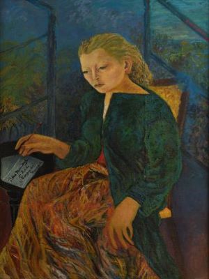 Tanti i ritratti che moglie e marito si facevano reciprocamente. Qui Mario in camice da pittore guarda verso Antonietta di cui sta facendo un ritratto poggiato su un improvvisato piano di lavoro. Tutta la composizione appare precaria, espressione di un istante: la posizione scomposta delle gambe, la barba lunga e i capelli disordinati del pittore, la statuetta in bilico sulla finestrella. E questa dimensione effimera, libera, è accresciuta da un colore ricco e pastoso.