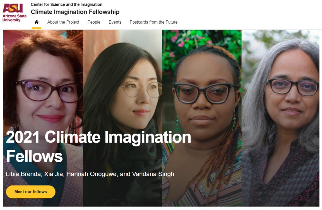 La Climate Imagination Fellowship è uno sforzo per esemplificare come potremmo creare il tipo di storie di cui abbiamo bisogno, attingendo ai talenti dei migliori autori e autrici di fantascienza provenienti da diverse parti del mondo, nonché a una rete di esperti di scienza del clima, governance, ecologia e altri campi essenziali» (climateimagination.org).
