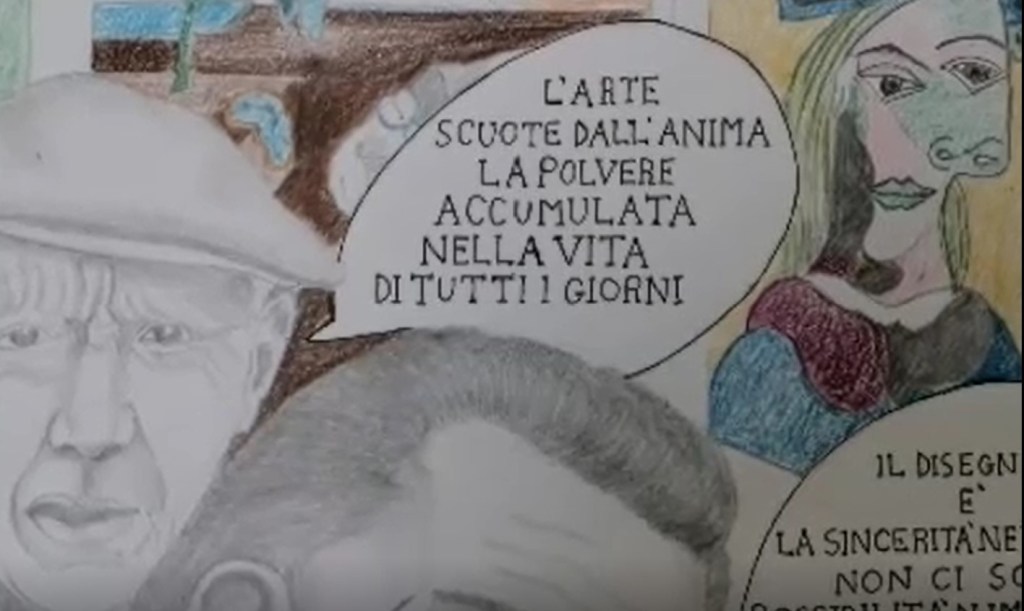 Poi c’è stata la progettazione grafica di un manifesto o di una Graphic Novel, per la sezione Pittura: in questo caso ragazze e ragazzi hanno utilizzato programmi di grafica e vari strumenti e supporti tecnologici, quali la tavoletta grafica, partendo anch’essi da ricerca storico-iconografica e da bozzetti preparatori.
