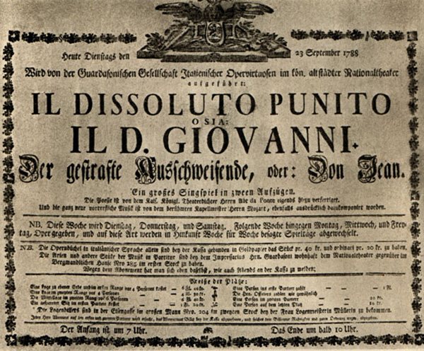 Il 6 settembre 1791, in onore della coppia imperiale, andò in scena a Praga La clemenza di Tito che piacque poco e fu ritenuta un’opera noiosa; di lì a breve invece ci fu il trionfo del Flauto magico (30 settembre), finalmente in lingua tedesca su libretto dell’amico Emanuel Schikaneder, Singspiel nato per un pubblico popolare, con l’intento di svagare, far sognare, divertire entro un mondo fantastico di uccelli, boschi, fate, draghi, personaggi irreali. La prima, seguita da una serie infinita di repliche, fu presentata al Freihaustheater di Vienna, il teatro dedicato appunto ai lavori meno impegnativi, adatti a persone semplici di ogni ceto sociale.