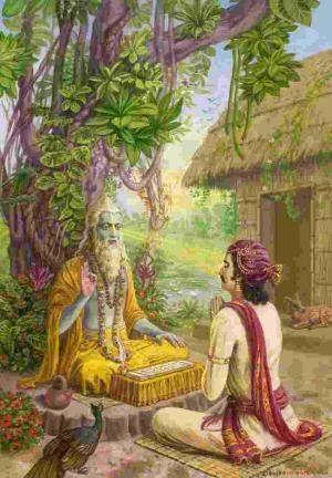 La creazione vedica del mondo materiale è personale e vi viene descritto un angolo del mondo spirituale speciale o brahmajoti, dove a volte appare una nuvola, e la porzione coperta dalla nuvola è chiamata mahat-tattva. Vishnu si sdraia nell’acqua del mahat-tattva, conosciuta col nome di Oceano Causale e mentre dorme crea innumerevoli universi con il respiro. Entra poi in ognuno di questi universi e genera Brahma, il quale crea tutte le forme di cui dovranno rivestirsi gli esseri individuali, secondo i loro desideri (creazione secondaria). Egli crea anche il Sole, la Luna e altri esseri celesti (Shrimad Bhagavatam 2.5.33).