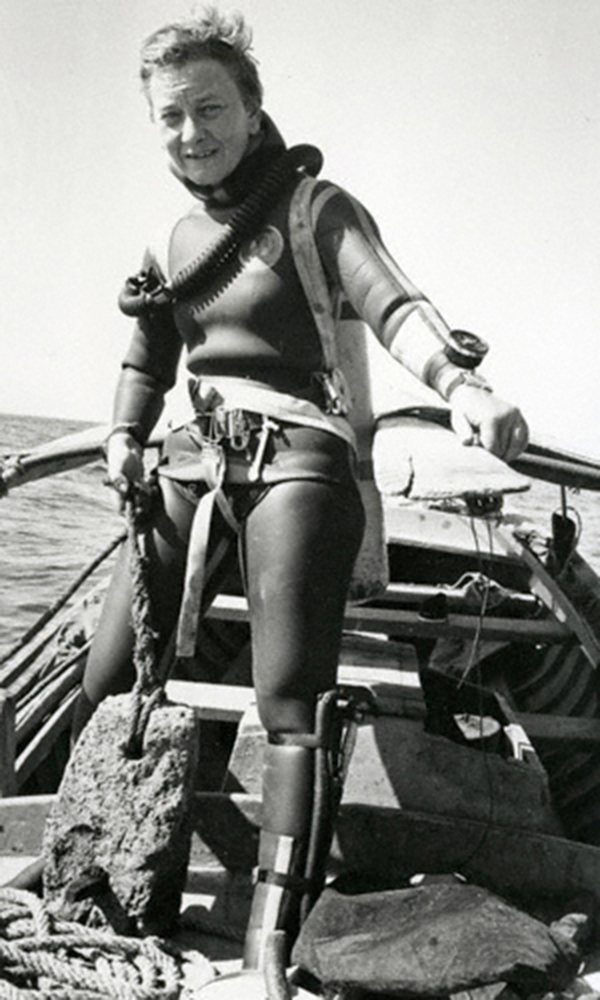 Gli interessi verso l’archeologia subacquea non sono certo una peculiarità recente, infatti tra le varie figure che si associano alla disciplina spicca Honor Elizabeth Frost, vera e propria pioniera delle ricerche subacquee. Frost era nata a Nicosia, Cipro, il 28 ottobre del 1917, unica figlia di Elizabeth Bisset e Rodolph James Frost; purtroppo rimase orfana quando era ancora una bambina, ma presto divenne la pupilla di un avvocato londinese, Wilfred Ariel Evill (1890-1963); affinché avesse una buona istruzione le fece frequentare l’École Vinet di Losanna. Negli anni Trenta si trasferì in Inghilterra e frequentò la Central School of Art di Londra, poi proseguì gli studi alla Ruskin School of Art di Oxford, dove entrò a far parte dell’University Ballet Club, infatti fu anche una grande appassionata di danza classica. Honor si avvicinò all’archeologia, in Gran Bretagna, con una formazione non specifica, sfruttando le sue capacità nel disegno e la passione per il mondo subacqueo. Lo strano metodo con cui si avvicinò ai reperti sotto il mare si ebbe a Wimbledon, quando si immerse in un pozzo con l’aria fornita da un tubo da giardino, ciò la convinse che «il tempo trascorso in superficie era tempo sprecato» (Sotto il Mediterraneo, 5). Tuttavia, un vero e proprio apprendistato nelle immersioni lo ebbe frequentando il club subacqueo di Cannes (Club Alpin Sous-Marin), dove Frédéric Dumas, Georges Barnier e altri avevano aiutato Jacques Cousteau a creare l’autorespiratore con una maschera, un erogatore d’aria e una o due bombole di ossigeno che permise fin dal 1943 ai sub di respirare sott’acqua in maniera autonoma. La prima esperienza di Honor in ambito archeologico avvenne nel 1957, quando prese parte all’ultima stagione degli scavi di Kathleen Kenyon a Gerico come disegnatrice tecnica. Imparò a disegnare i piani delle tombe sotterranee dell’età del Bronzo scavate nella roccia fratturata e a seguire la meticolosa disciplina dell’archeologia terrestre. Da quel momento fece suo il motto di Kenyon: «lo scavo, per quanto ben eseguito, senza un’adeguata pubblicazione è distruzione sfrenata». A Gerico, Frost aveva notato che molte/i studiose/i erano attratti dai resti di antiche strutture costiere, fermando però il loro interesse alla superficie dell’acqua. Negli undici anni successivi, sebbene con discontinuità, iniziò a sondare i resti della costa del Levante priva di porti, e mise in atto le sue nuove abilità nel tracciare, mappare e disegnare. Nel 1959 fece un’escursione sulla costa meridionale della Turchia, a Bodrum, un antico villaggio utilizzato dai pescatori di spugne; lì conobbe Peter Throckmorton (1928-1990), ricercatore statunitense che portò a compimento lo scavo di Capo Gelidonya (L’Archeologo subacqueo, 45), dove lei disegnò gli oggetti ritrovati. Le tecniche utilizzate costituirono un passaggio importante per approfondire la metodologia archeologica subacquea: Frost diede grande valore all’esperienza con una delle sue prime pubblicazioni, Under the Mediterranean (1963). Il risultato straordinario ottenuto divenne punto di riferimento per la disciplina nascente. Proprio questo fu il sottotitolo di un libro molto autorevole da lei coordinato e in parte scritto per l’Unesco: Underwater Archaeology: A Nascent Discipline.