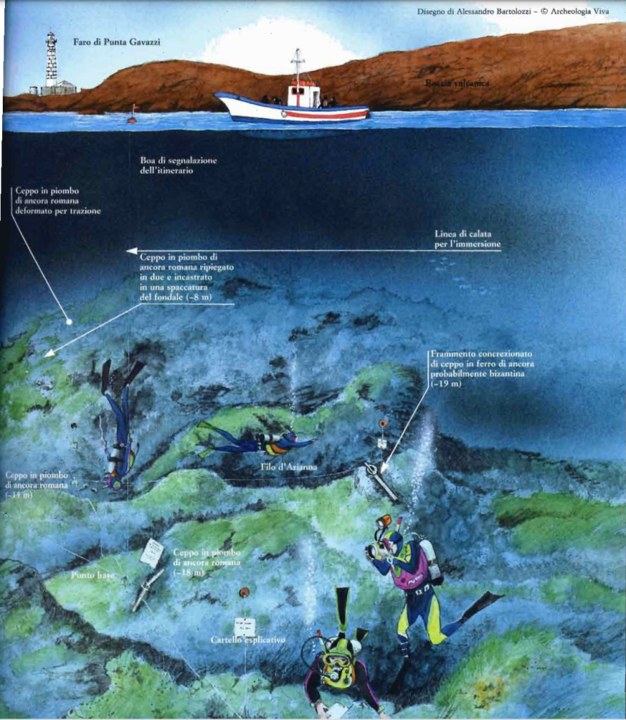 Ella pubblicò una relazione finale degli scavi negli Atti dell’Accademia Nazionale dei Lincei già nel 1976. I metodi di prospezione erano allora tutti da inventare, così mise a punto e pianificò un protocollo di scavo che solo le moderne tecniche digitali rendono oggi così esatto e sicuramente più veloce. Il suo lavoro riguardò il recupero dei legni, dei cocci, di qualche anfora, di materiale organico, di cordami e poche armi; si occupò anche del restauro del legno bagnato, operazione tuttora complessa. È considerata come colei che ha inventato l’itinerario archeologico sommerso di Punta Cavazzi, a Ustica (nella foto sottostante), ed è pure la prima donna insignita del Tridente d’Oro, il massimo premio d’eccellenza a livello mondiale per le attività subacquee.
