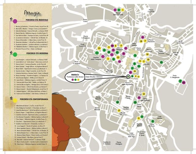 Nel sito c’è una piantina del centro di Perugia con indicati tutti i luoghi dove trovare queste donne. I percorsi sono tre, corrispondenti alle tre epoche considerate: età medievale, età moderna ed età contemporanea.