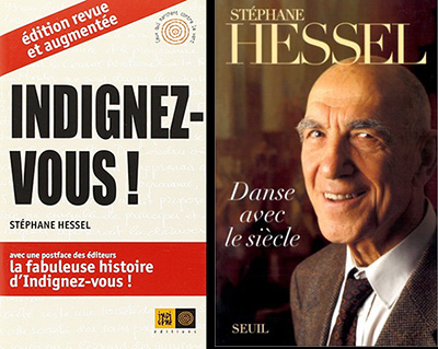 Nell’autunno 2010, l’editoria francese ed europea accoglie con entusiasmo l’uscita del piccolo pamphlet di Stéphane Hessel Indignatevi! (Indignez-vous!). È il libro più comprato e più regalato nel Natale dello stesso anno ed è in virtù di questo testo che i movimenti sociali dell’anno successivo saranno ribattezzati dai giornali «gli indignati». Stéphane Hessel (1917- 2013), protagonista del Novecento europeo, è stato prima un fervente antifascista, e in quanto tale deportato a Dora e a Buchenwald, da cui è riuscito a fuggire per raggiungere Charles De Gaulle e unirsi alla Resistenza francese, poi ambasciatore e rappresentante della Francia all’ONU. La sua autobiografia, pubblicata nel 1996, è intitolata Danza con il secolo (Danse avec le siècle). Il suo viso calvo e sorridente ha illuminato la Francia per novantasei anni. A lui Les Saltimbanks dedicano la canzone Indignez-vous! (nessun titolo poteva essere più appropriato), contenuta nell’album Les temps modernes, uscito nel 2012. È un brano quasi rock, con accordi forti e decisi, come lo spirito di chi ha conosciuto le più grandi atrocità della Storia e le ha combattute.