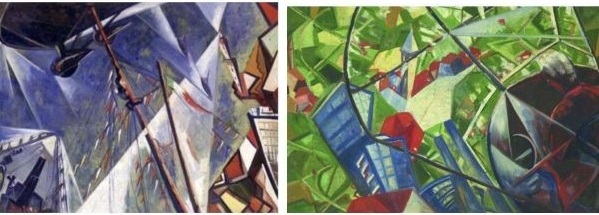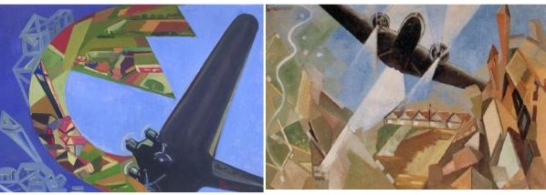 Le sue opere di questo periodo sono trionfalistici racconti di vittorie militari nei cieli, dove tutto è in movimento, soggetti, colori, linee, prospettiva.