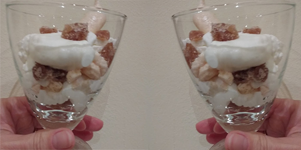 Nei bicchieri alternate strati regolari di meringa, panna e marron glacés, e terminate con una meringa intera.