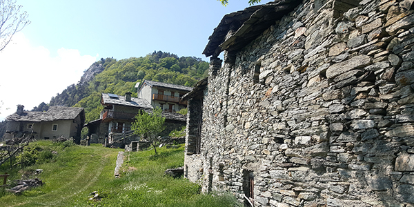 Con un tratto in asfalto raggiungiamo la Borgata Champore e su un tratto di sentiero ripido arriviamo alla frazione di Omens. Si tratta di un luogo a noi particolarmente caro, perché vi abbiamo trovato uno dei nostri fratelli animali più cari, un gattino a cui abbiamo dato il nome di Pilu, che ci ha tenuto compagnia per quattro anni e se ne è andato troppo presto. Ce lo fecero conoscere i gestori della trattoria Omens, in cui di tanto in tanto ritorniamo per degustare piatti tipici valdostani.
