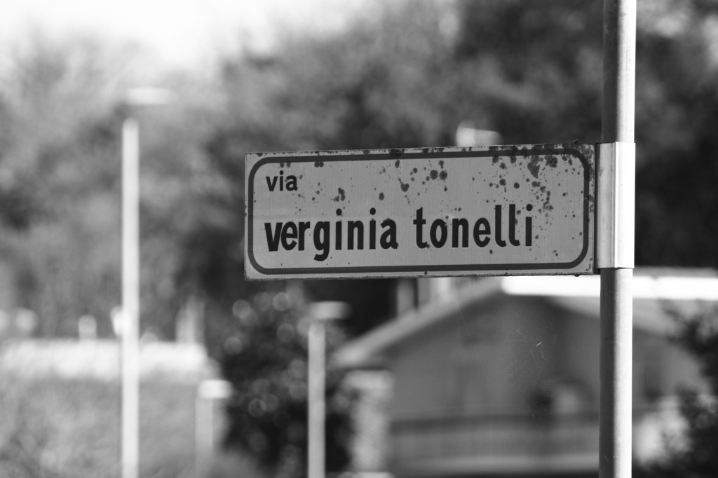 Svoltando e sinistra si arriva in via Virginia Tonelli, una strada istituita nel 1977, e intitolata alla partigiana Tonelli (1903-1944). Virginia aderisce già dagli anni ‘30 al partito comunista clandestinamente e con la guerra inizia a combattere da partigiana con il nome di “Luisa” in Veneto e Friuli. Catturata dai fascisti e violentemente seviziata viene mandata nel campo della Risiera di San Sabba e lì bruciata viva. Ottiene la medaglia d’oro al valor militare il 25 gennaio del 1971.