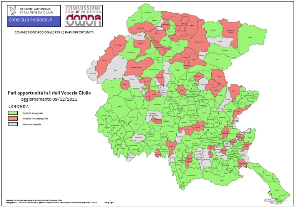 La Commissione regionale di Pari opportunità del Friuli Venezia Giulia è stata la prima in Italia a rilevare i Comuni virtuosi con dichiarata delega alle Pari opportunità. In data 15 dicembre 2021, in occasione della consueta Assemblea annuale con le Associazioni e Movimenti del Territorio, la Crpo Fvg ha presentato una Mappatura dove si evidenziava la situazione nei singoli Comuni della Regione in merito all’assegnazione alla delega per le Pari Opportunità. Di questo ci parla la Presidente della Crpo Dusy Marcolin, promotrice in prima linea dell’iniziativa che ha già visto in soli due mesi dei riscontri positivi.