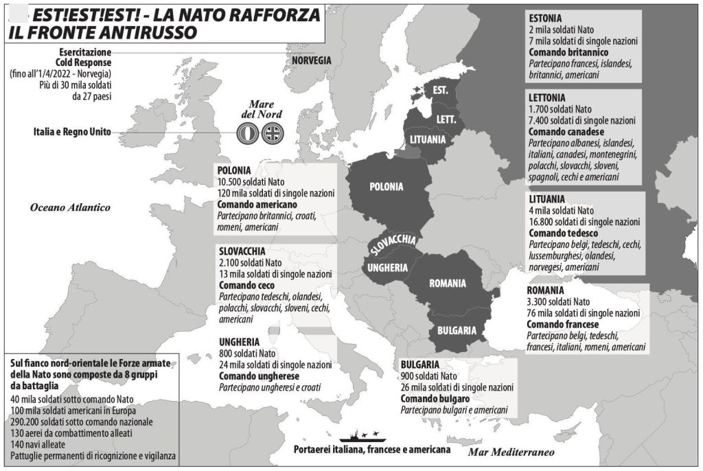 Dopo due guerre mondiali in territorio europeo e una Costituzione operatrice di pace forse ci eravamo illuse/i che affermazioni di questo genere non ci sarebbero più state. Di strategia di contenimento verso la Russia parla l’articolo di Klimmage, Il ritorno del contenimento, che ci descrive il punto di vista statunitense sulla guerra in Ucraina, richiamando la dottrina di Kennan verso l’Urss e dichiarando apertamente l’interesse e il coinvolgimento degli Usa in Ucraina, che, come dimostra Ferrante in Le armi della Nato in Ucraina, risale a molto tempo fa. «Negli ultimi 14 anni i paesi dell’Alleanza Atlantica hanno rifornito Kiev di materiale bellico e addestrato le Forze armate ucraine. Primi furono i lituani, imitati da polacchi, cechi e turchi. Ma la parte del leone spetta a Stati Uniti e Gran Bretagna».