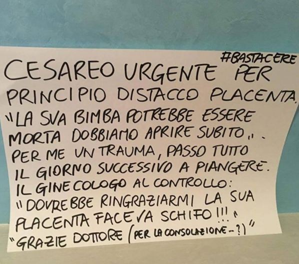 L’utilizzo di Internet ha permesso alle madri di condividere le proprie storie, di trovare consolazione e una nuova consapevolezza nel legame di solidarietà instaurato con altre donne che hanno vissuto la stessa esperienza. Da queste condivisioni, tuttavia, sono emersi anche racconti sconvolgenti per quanto poco se ne parli, nonostante la loro diffusione. Equipe mediche che negano epidurali senza un valido motivo, o fanno interventi cesarei senza che ce ne sia bisogno solo per velocizzare il parto, spesso senza informare i futuri genitori sull’impatto che ciò può avere in successive gravidanze e nascite. Infermieri e infermiere che trattano male le partorienti con commenti inopportuni o veri e propri insulti, esprimendo a voce alta giudizi che nulla hanno a che vedere con il parto, colpevolizzandole per qualunque complicanza. Risultati di esami prenatali tenuti nascosti o sminuiti per evitare aborti. Punti di sutura dati senza anestesia o senza che ce ne sia la reale necessità, come nel caso dell’husband stich, ovvero quei punti in più che vengono messi solo per rendere il canale vaginale più stretto in vista di prossimi rapporti sessuali, senza aspettare che i muscoli tornino da soli al loro stato originale. Operazioni mediche compiute sulle partorienti senza che queste lo sapessero – la più comune è l’episiotomia, un’incisione del perineo fatta per allargare l’orifizio vaginale, di cui le pazienti vengono spesso informate solo quando si stanno riprendendo dal parto.
