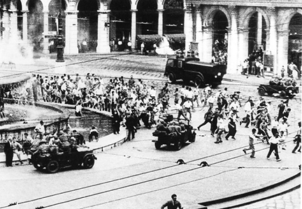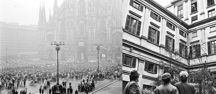 A fare da spartiacque a questo periodo è il biennio “caldo” 1968-1969, segnato dalle agitazioni studentesche e da quelle operaie e, soprattutto, dall’inizio della “strategia della tensione” con cui lo Stato risponde alle nuove esigenze di libertà. Il dicembre 1969 è spiegato con un’immagine scattata a Milano in piazza del Duomo: il funerale delle diciassette vittime della strage di Stato, compiuta in piazza Fontana il 12 dello stesso mese. La diciottesima precipiterà la sera stessa dalla finestra del quarto piano della questura: la foto ritrae un manichino fatto volare dalla medesima finestra per ricostruire le dinamiche della morte dell’anarchico Giuseppe Pinelli, morto «suicida» secondo il questore, «a causa di un malore attivo» secondo il commissario, e «suicidato» secondo la sinistra.