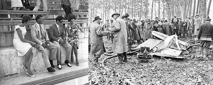 A destra, I rottami dell’aereo di Enrico Mattei precipitato a Buscapè (Pavia) mentre si preparava ad atterrare a Linate, 27 ottobre 1962, autore non indicato
