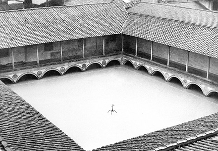 A destra: Ricostruzione con un manichino della morte dell’anarchico Giuseppe Pinelli nella Questura di Milano, 1972, autore non indicato