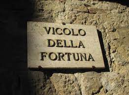 Questa viuzza fa parte di una serie di vicoli, quali la Manna e dell’Oro, dai nomi inneggianti alla prosperità e all’abbondanza. Sarebbe, quindi, un’ottima idea intitolare in questa zona, uno spazio a Maria Fortuna, poeta e scrittrice che a Siena arriva da giovane, nel 1768, e qui inizia la sua fortunata carriera letteraria. Una donna che, pur provenendo da umili origini, seppe farsi strada come scrittrice.