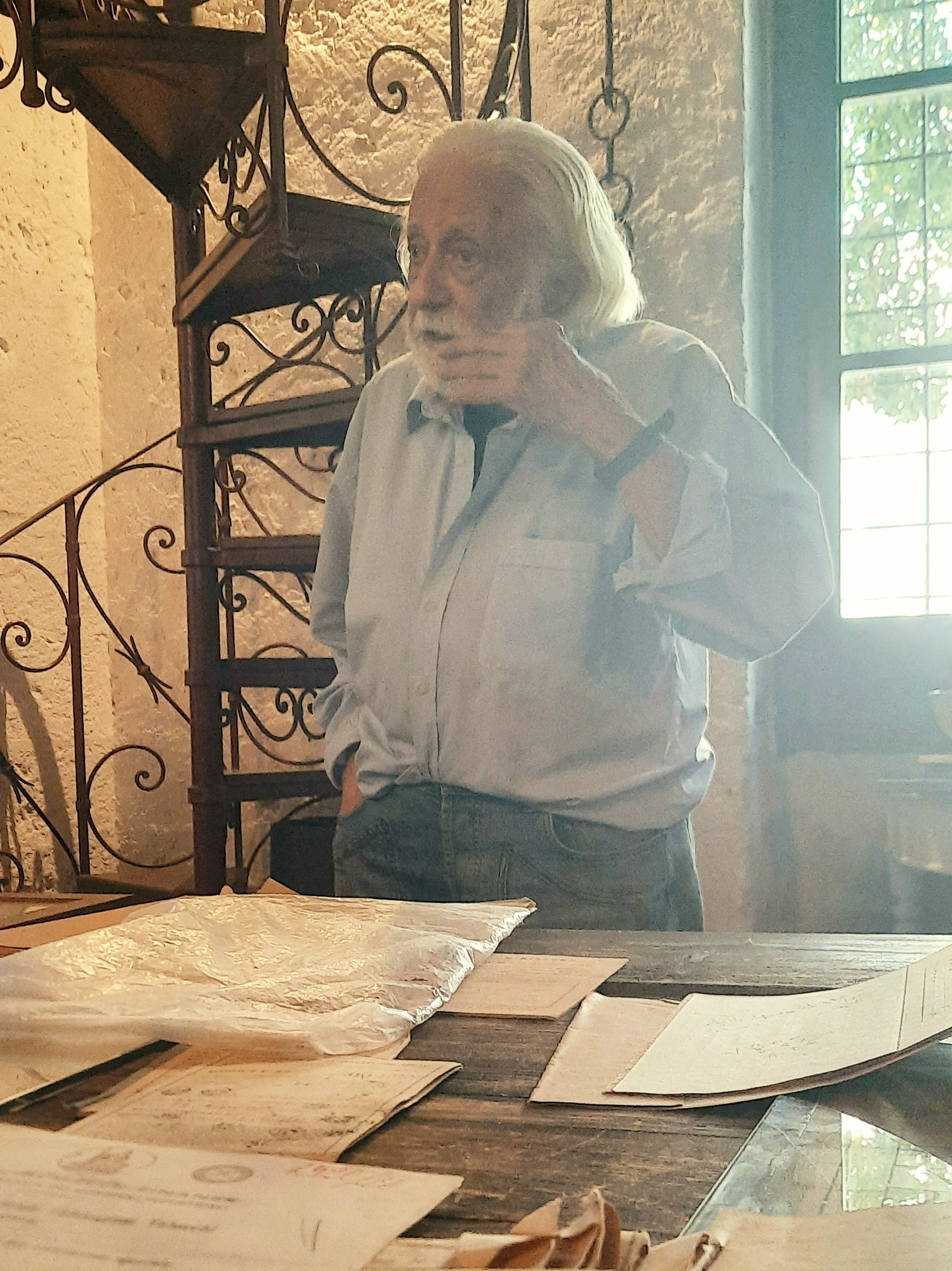 Tra le testimonianze della storia umana che il professore ha accumulato fino a soffocare gli ambienti della sua casa, c’è una memoria in particolare che tiene in vita: quella della moglie scomparsa Dagmar Davidson, poetessa e pittrice svedese che ha passato in Salento quasi tutta la sua vita.