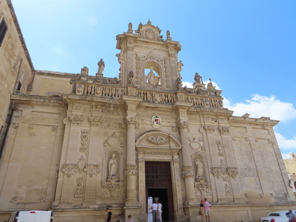 Con la sua inconfondibile morbida pietra leccese, la città si aggroviglia in motivi barocchi, che trovano la loro massima espressione nel Duomo e nella Basilica di Santa Croce (dove, tra l’altro, fu originariamente sepolta Maria D’Enghen cfr. link), ma che lasciano a bocca aperta anche negli angoli meno noti e nei vicoli meno battuti della città.