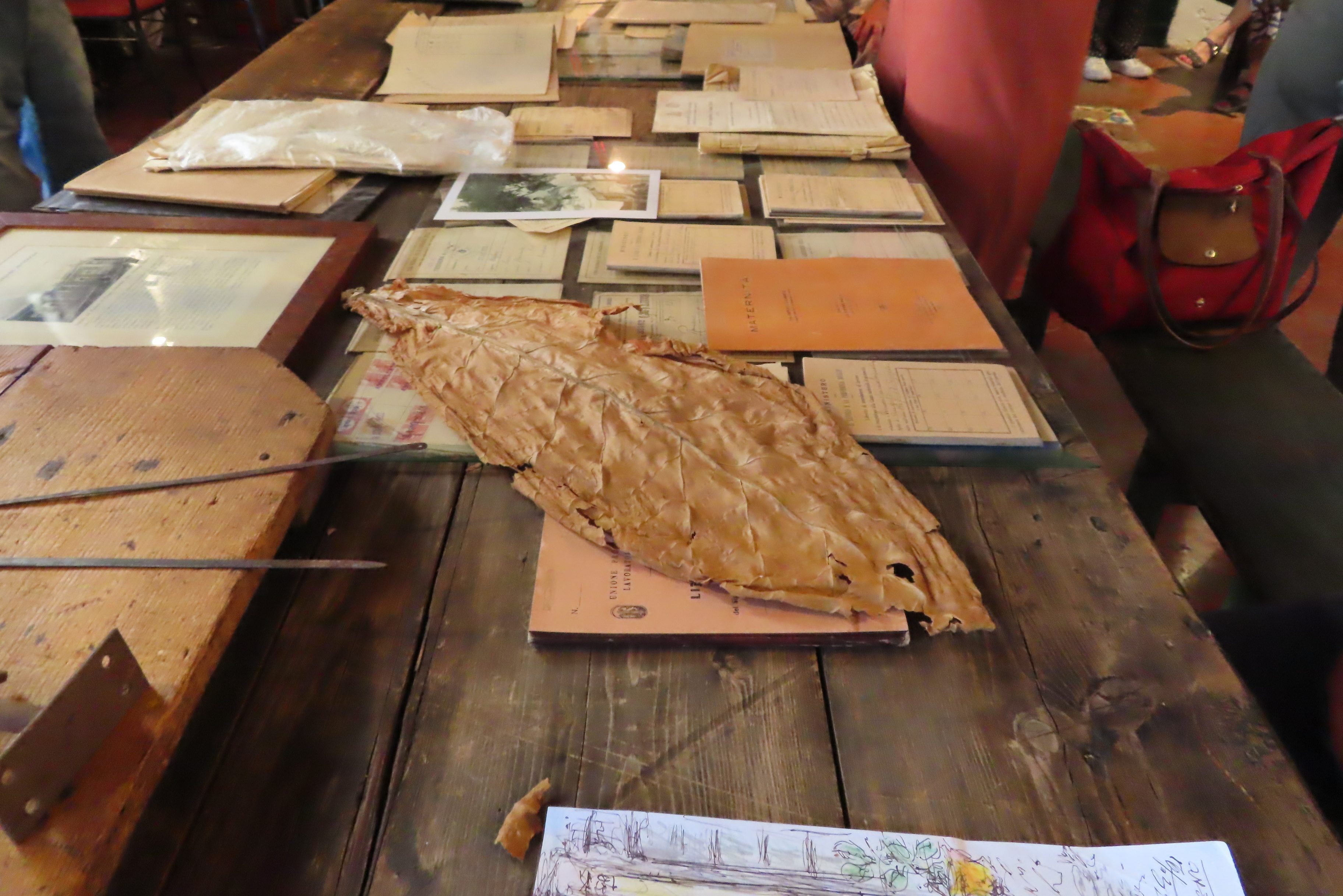 La prima persona che abbiamo incontrato è il sig. Guarino, ex direttore del tabacchificio di famiglia che con il passare degli anni (e di anni ora ne ha 99!) ha trasformato l’azienda di famiglia di lavorazione del tabacco in un museo sulla storia di questa filiera e delle sue lavoratrici, le tabacchine. Entrando nell’ex-tabacchificio, si possono toccare con mano gli strumenti e i documenti relativi alle varie fasi di lavorazione, dall’essicazione alla tritatura.
