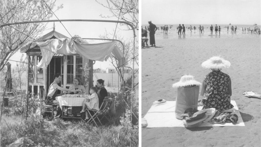 L’ottava stanza, dedicata alla villeggiatura e allo svago della borghesia francese, raccoglie il tema Le temps des loisirs et des vacances. Siamo alla fine degli anni Cinquanta, dopo la ricostruzione postbellica e durante il boom economico del dopoguerra, una sorta di seconda Belle époque europea. Il tema di questa sala è collegato a quello della decima e ultima, Monde et mondanité, che sfoggia balli e vestiti di lusso, fotografie commissionate dalla rivista Vogue.