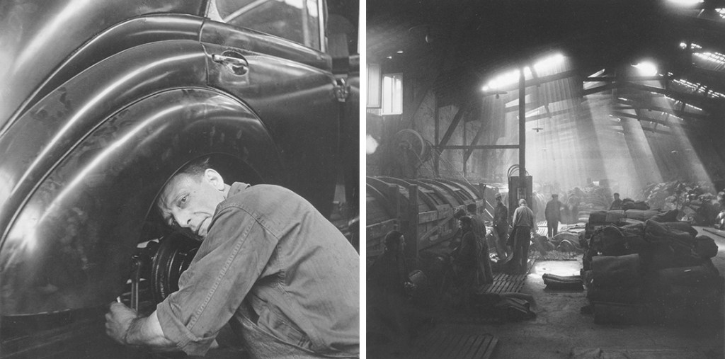 La terza sezione, intitolata Le monde du travail, raccoglie le immagini scattate dall’autore subito dopo la fine della guerra durante il lavoro come pubblicitario presso le officine della Renault, quello che Doisneau chiama «il mondo di coloro che si svegliano presto». I giochi di luce registrati al chiuso sono magnifici.