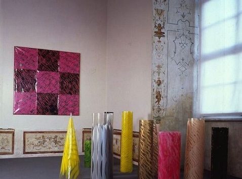 Tra gli anni Sessanta e gli anni Settanta, l’artista mostrò una tendenza a “uscire” dalla tela, portando la sua ricerca in installazioni di vario tipo, utilizzando anche nuovi materiali, supporti plastici trasparenti e vernici fluorescenti, come “sicofoil”, fogli dipinti, stesi o arrotolati di acetato di cellulosa.
