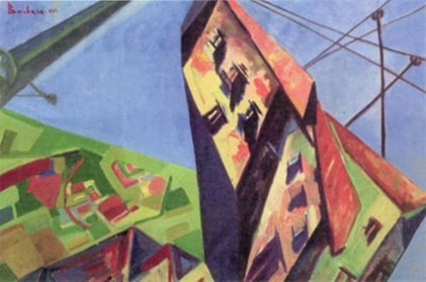 Al Broletto di Novara ebbe la sua prima mostra personale, seguirono partecipazioni alla Biennale di Venezia, alla Quadriennale di Roma e alla Mostra d’Oltremare di Napoli: in questo modo contribuì a risollevare le sorti di un movimento che cominciava a risentire della crisi, ma anche a provocarne la fine di lì a poco. Intanto Scurto venne richiamato in guerra, prima in Francia, poi in Russia, da dove tornò distrutto nel corpo e nello spirito, e morì qualche anno dopo. Olga nel frattempo scriveva novelle “rosa” che le permettevano di arrotondare gli introiti più dei quadri. Convinta pacifista, rifiutò l’esaltazione della guerra a opera dei futuristi, come aveva già fatto con il loro maschilismo, e prese le distanze dal movimento. In Battaglia aerea non c’è più il trionfo. Non ci sono più le grandi scene di guerra. Il soggetto ora è il decadimento delle prodezze aree, la morte: due arei duellano in volo, un altro precipita lasciando una scia scura e in basso un profilo di donna, forse proprio lei, Barbara, che assiste alla scena.