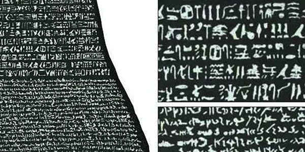 La decifrazione degli antichi geroglifici è a un soffio: questo si percepisce negli ambienti intellettuali e accademici. Ma un soffio pesante, impolverato da secoli di oblio, che stenta a decollare e che pare rimanere ancorato e immobile al passato e alla dimenticanza. Anche perché il testo della stele rappresenta solo un frammento, neanche troppo lungo, dell’intero editto. In particolare, del geroglifico rimangono solo quattordici righe, del demotico poche di più e del greco, sulla parte inferiore, cinquantaquattro righe, di cui solo le prime ventisette risultano intere.