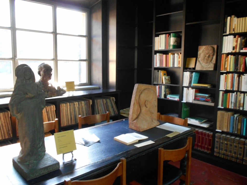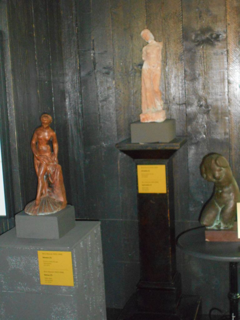 Una grande sala che guarda verso il fiume attraverso le ampie finestre ospita la maggior parte delle opere, suddivise per temi: alcuni ritratti di personaggi famosi, fra cui quelli a Eduardo de Filippo e a J. F. Kennedy, altri a bambine e a bambini dall’aria ribelle, che richiamano le sculture di Vincenzo Gemito. E poi le bellissime maternità, lei che madre non fu mai, ma seppe cogliere con immensa finezza nell’abbraccio, nelle mani, in un semplice gesto di donna l’amore indissolubile che lega una mamma al figlioletto o alla figlia neonata.