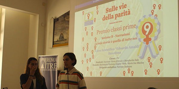 Il “Premio Classi Prime” è andato al racconto La mia storia è quella di tutte noi, giunto dalla I B del Liceo Scientifico Edoardo Amaldi, dell’Istituto italiano statale comprensivo di Barcellona. Questa la motivazione del premio: