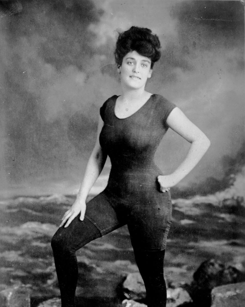 Esuberanza, novità e modernità sono i tratti distintivi di Annette Kellerman, che sfida costantemente tutte le convenzioni sociali; nel 1907 è arrestata per aver indossato un costume intero mettendo in mostra gambe e braccia. Questa nuovo modello prende piede proprio grazie a lei e diviene presto un simbolo dell’esaltazione della libertà femminile.
