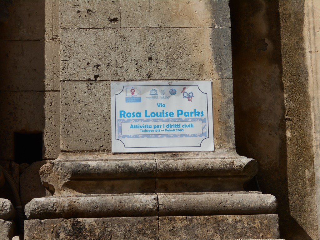 Il progetto condiviso, realizzato dalle/gli studenti dell’Istituto Matteo Raeli, era incentrato su una significativa serie di donne “che hanno detto No” e si concretizzò il 29 febbraio 2020 con grande coinvolgimento della cittadinanza. Grazie alla collaborazione fra il comune, la nostra associazione e le socie attive sul territorio, nel 2018 una rotatoria periferica è stata dedicata a Gaetana Midolo; nata nel 1895 a Noto ed emigrata negli Usa, fu una delle 129 operaie morte nell’incendio della fabbrica newyorkese Triangle Waist Company il 28 marzo 1911, di cui mirabilmente ha scritto la nostra Ester Rizzo in Camicette bianche (2014).