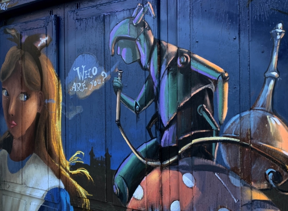 Nel mio linguaggio è presente sicuramente una forte predominanza della componente onirica legata al volo, alla sospensione, per cui questi miei personaggi, che poi sono delle simbologie, viaggiano sempre sopra dei macchinari fantastici che delle volte sono navi, delle volte possono essere mongolfiere o addirittura animali trasformati in macchine meccaniche per cui c’è una aderenza alla cultura steampunk da cui traggo ispirazione. Si legano nell’arte urbana nel senso fantasioso della rappresentazione che io sto illustrando, cioè, c’è sempre un messaggio nei miei muri, è un messaggio se vogliamo culturale-sociale con un impatto proprio in quel luogo in particolare perché voglio raccontare qualcosa di quel territorio, ma lo faccio attraverso una componente sognante, fiabesca; desidero invitare la gente ad alleggerirsi un po’ nel momento in cui guarda la mia opera, ognuno/a ci entra dentro e ne legge il significato attraverso un elemento piuttosto fanciullesco.