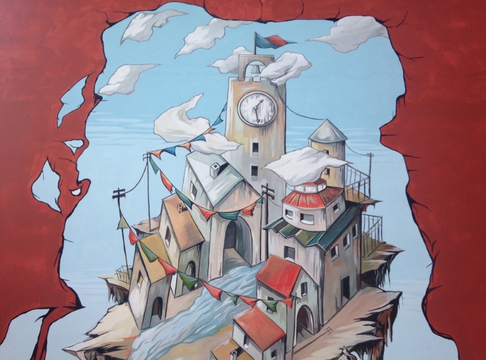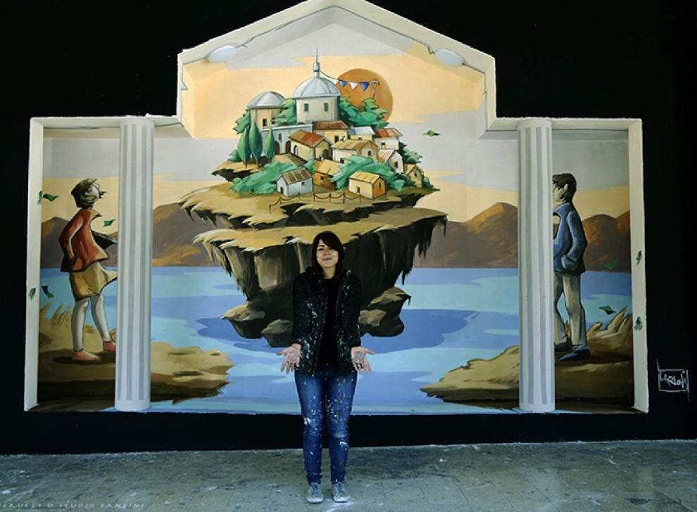 Nelle mie opere cerco sempre un’interazione con il territorio in cui agisco soprattutto per quanto riguarda i muri perché per me è fondamentale trovare un legame con la storia, con la tradizione, col folklore di quei luoghi; soprattutto se stiamo parlando di realtà piccole, come borghi e villaggi, cerco di adeguare, di adattare il mio stile surreale e sognante in un messaggio, in una chiave che abbia aderenza con l’humus di quel territorio.