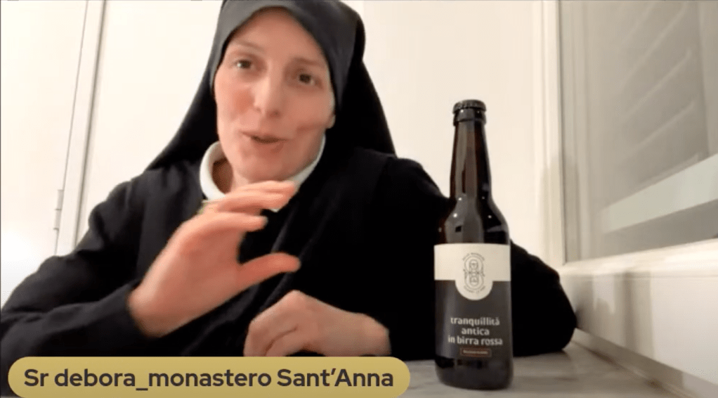 La seconda ospite del salotto virtuale valdostano è stata Suor Deborah del Monastero di Sant’Anna di Bastia Umbra, il primo monastero benedettino femminile a produrre birre artigianali. Suor Deborah è stata una vera scoperta, che ha colpito moltissimo sia le organizzatrici dell’incontro che coloro che lo stavano seguendo. La birra, ci ha ricordato, concepita e poi prodotta nel silenzio del Covid, è stata il frutto di un processo che ha richiesto il suo tempo. Le sorelle si dedicavano già alla coltivazione dei prodotti dell’orto a km zero, ma l’idea della produzione della prima birra monastica femminile è stata il frutto di un percorso condiviso, che ha voluto valorizzare i 20 ettari di terra del Monastero coltivati a orzo, secondo il metodo della rotazione, che assicura un prodotto biologico, ricco e di elevata qualità. La comunità benedettina è composta da una ventina di giovani monache, con diverse specializzazioni. Suor Deborah è architetta, mentre la giovane Madre Abbadessa è una ex giocatrice di basket che condivide con le altre la grande energia e il grande fermento della comunità. Come tutte le sportive sa vedere lontano e incoraggia nuove iniziative come il bellissimo progetto della birra monastica femminile con cui le monache hanno voluto trasmettere quel buono della vita monastica che fosse anche commestibile. Le birre sono “vestite”, in etichetta, come le monache, a significare che, come in tutti i prodotti dell’orto le monache ci sono e li seguono dall’inizio alla fine. Il Monastero ha scelto di non aprire un canale e-commerce per far conoscere le birre. Una scelta coraggiosa che si basa sul bisogno di recuperare le relazioni che ci sono state sottratte dalla pandemia e di “riabilitarsi” dal Covid.La tecnologia è stata indispensabile in pandemia ma il virtuale non può sostituire la vicinanza tra le persone. Per questo l’invito è ad andarle a trovare a Bastia Umbra, per parlare di birra degustandola insieme alle monache, secondo i valori monastici dell’ascolto e dell’accoglienza. La loro meta successiva è quella di aprire un proprio microbirrificio, mentre attualmente si appoggiano a un maltificio umbro composto prevalentemente da giovani, con cui hanno condiviso la ricetta della birra studiata con un mastro birraio veneziano, scoprendo importanti affinità di valore. La birra è un alimento prezioso frutto del lavoro appassionato di tante persone e le monache vogliono trasfondervi tutto il bello della loro vita monastica. Le birre prodotte sono due, una bionda e una ambrata, non troppo alcoliche, piuttosto beverine ma di grande qualità, in uno sforzo di miglioramento continuo, perché una sana competizione è positiva e serve a mantenere in equilibrio economico il Monastero, nel rispetto dei valori benedettini, che mettono al centro il lavoro e la persona. Chi andrà a trovarle alloggerà in Foresteria, come in ogni Monastero e sarà chiamato/a a condividere non solo i momenti di preghiera, ma anche quelli di lavoro, in silenzio e accanto a loro: un modo terapeutico per ricominciare a tessere relazioni. L’incontro con suor Deborah è stato molto interessante e ci ha comunicato una grande tranquillità, che è poi è il nome che le monache hanno dato alle birre bionda ambrata e rossa che producono.