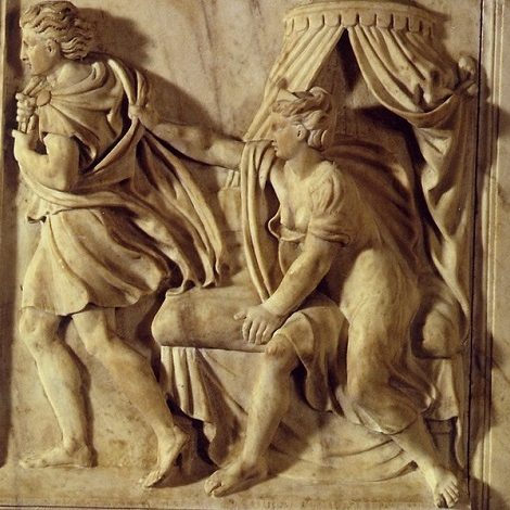 Sono solo tre le opere che si possono riferire con una certa sicurezza a Properzia de’ Rossi. La prima è la formella con la moglie di Putifarre che tenta di sedurre Giuseppe, la seconda è l’altro bassorilievo, che raffigura l’episodio dell’accusa mossa dalla moglie di Putifarre a Giuseppe. È un’opera che nella storiografia è menzionata molto meno di quella che raffigura l’episodio della tentazione, tanto che in passato è stata attribuita anche ad Amico Aspertini. La critica oggi si è assestata su un’attribuzione a Properzia.
