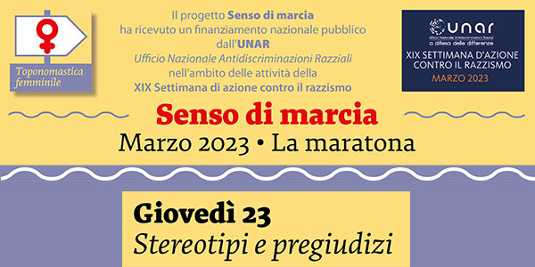 La quarta giornata del progetto Senso di marcia è intitolata “Stereotipi e pregiudizi” ed è dedicata all’analisi dei danni causati dalle nostre idee preconcette. A condurre sono Danila Baldo e Donatella Caione, mentre ad intervenire sono state Graziella Priulla, Laura Saccani, Paola Malacarne, Elvira Adamo, Valeria Zagolin e Graziella Catozza.