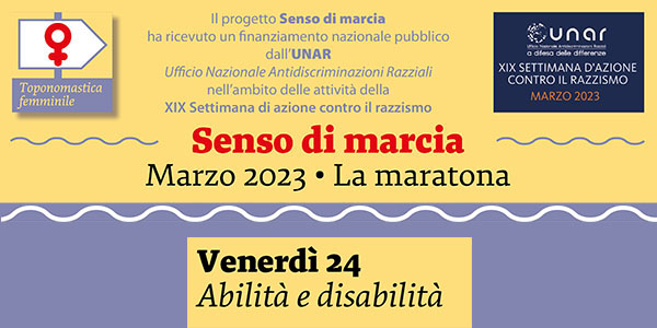 La quinta giornata del progetto Senso di marcia è intitolata Abilità e disabilità ed è dedicata a discutere i temi delle discriminazioni contro le persone disabili, delle difficoltà da loro incontrare soprattutto a scuola e delle loro abilità o talenti, focalizzandosi sulle loro esperienze. A condurre è Chiara Baldini, mentre a intervenire sono state Manila Cruciani, Giusy Rubechini, Tiziana Concina, Valeria Pilone, Vanessa Sabbatini e Marta Vischi.