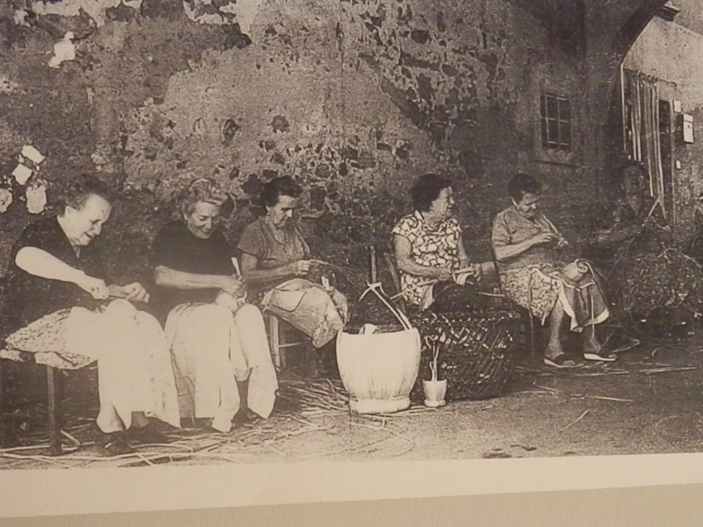 A monte di questi mestieri era però indispensabile la raccolta delle erbe palustri, uno dei principali compiti femminili nelle aree adiacenti al Padule di Fucecchio; si tratta di piante spontanee, un tempo molto diffuse, della famiglia dei “càrici”, in particolare la sala e il sarello. La prima serviva per ricoprire i fiaschi di vetro e l’altra per impagliare le tradizionali seggiole di legno povero e creare i “cappelli” delle damigiane. Dopo la raccolta, l’erba veniva fatta seccare, quindi lavorata, dandole la forma di lunghe trecce (realizzate dalle trecciaiole) con cui si realizzavano rustiche sporte. Si usavano pure il biòdano e la gaggìa (acacia) dai rami flessibili per completare il cesto robusto che veniva posto alla base della damigiana.