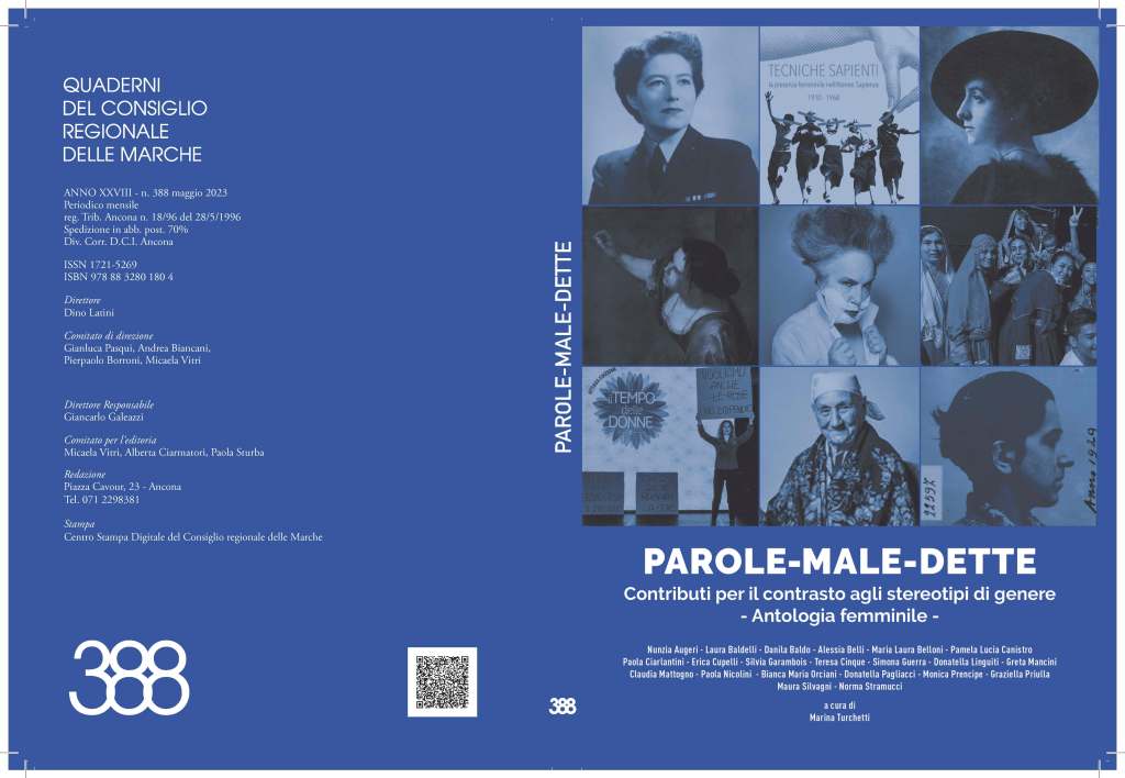 Nell’Antologia è presente anche un capitolo che parla della collaborazione fra Tf e Reti culturali, che si è concretizzata in diversi eventi comuni, ma soprattutto mediante articoli pubblicati sulla nostra rivista settimanale Vitamine vaganti (si possono leggere integralmente qui). Infatti ogni sabato precedente gli incontri online del ciclo Cambiamo discorso, organizzato da Reti culturali, è stata realizzata un’intervista alle relatrici, a cura di Danila Baldo, anche come richiamo e invito all’ascolto del webinar successivo. Il significato, però, è stato soprattutto quello di far conoscere i percorsi scolastici e culturali delle esperte presenti negli incontri, le loro esperienza di vita, le motivazioni in quel settore di intervento, i progetti nel cassetto per il futuro… per far in modo che le loro parole diventassero anche importanti spunti di riflessione e di orientamento scolastico e professionale per le giovani generazioni, vista l’importanza e la varietà dei temi affrontati, dal linguaggio comunemente utilizzato ad approfondimenti nelle diverse branche del sapere, dalla fotografia alle arti visive, dalle migrazioni alla violenza di genere e all’educazione per contrastarla, e molti altri, sempre nella direzione di contrastare pregiudizi e discriminazioni. L’antologia Parole-Male-Dette è il quinto volume che, dal 2019 a oggi, viene patrocinato dal Consiglio Regionale delle Marche che, come scrive il presidente Dino Latini, «riconosce la centralità e l’attualità degli argomenti che – nella più vasta scelta di aspetti – costituiscono il leit motiv degli appuntamenti: un apporto duraturo e sempre più coinvolgente per lo smantellamento della “cultura della violenza”, per il contrasto a una visione del mondo che tende a mantenere le donne in uno stato di minorità».