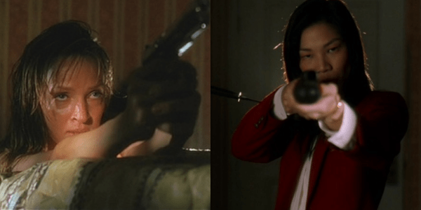 La duologia di Kill Bill offre una prospettiva interessante: la gravidanza è ciò che spinge la protagonista Beatrix a cercare di abbandonare la carriera da assassina per una vita tranquilla, lontana dal padre della creatura che ha in grembo il quale non è in grado di assicurare quella calma quotidianità da lei tanto agognata; un’autonomia decisionale che per l’antagonista, Bill, è assolutamente inconcepibile, e che lo porta a rovinare la vita della sua vecchia amante e a rubarne la figlia. La vendetta di Beatrix assume quindi una nuova sfumatura quando la si compara ai miti antichi: le Amazzoni venivano derise e temute per il fatto che usavano gli uomini solo per poter mandare avanti la loro stirpe, e alla prima occasione vennero sterminate da quegli stessi uomini; Beatrix si vendica del suo mentore e amante e della sua squadra, ribaltando il mito della fine delle Amazzoni permettendole di ottenere il suo lieto fine.