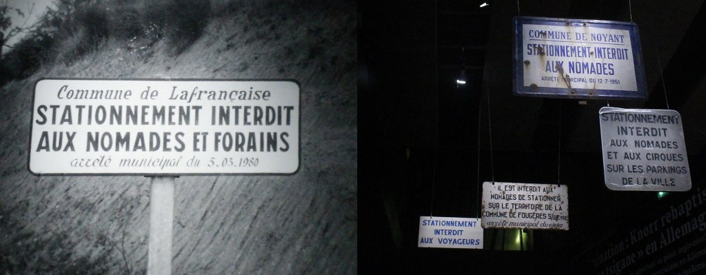 A partire dal 1969, per le istituzioni francesi, il nuovo termine per indicare i nomadi è “persone in viaggio” e i carnets anthropométriques sono stati sostituiti con i libretti di circolazione, volti a controllare (e impedire) gli spostamenti di persone che vivono in roulotte. È stata inoltre istituita una tassa sulle roulotte per rendere illegali tali abitazioni alle persone meno abbienti. Fuori dalle città francesi sono state istituite delle cosiddette “aree di accoglienza per persone in viaggio” («che non hanno proprio nulla di accogliente e spesso danneggiano la nostra salute», spiega uno dei curatori della mostra: oggi un proverbio romanì dice: «se cerchi l’area di accoglienza, cerca la discarica»).