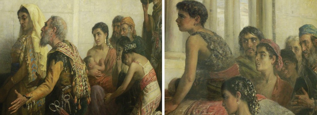 Un dipinto femminista spagnolo mostra l’ipersessualizzazione del corpo delle donne, anche quelle nomadi: la propaganda razzista e antiziganista occidentale ha sempre fatto leva sulla bellezza delle giovani donne-streghe per screditarle. Del resto, l’accostare i concetti di donna, strega e puttana non è certo una novità per l’Europa. Ma, nel caso di una “zingara” gli stereotipi si associano e si intrecciano e la leggenda è servita: ecco la bella cartomante che seduce e distrae il buon europeo onesto e cattolico mentre lo “zingaro” venuto da lontano lo deruba.