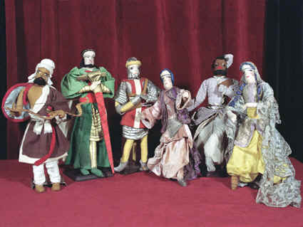 Il suo grande amore rimasero però i burattini. A partire dagli anni ’40 cominciò a realizzarli con forme e caratteristiche diverse a seconda dei movimenti e delle funzioni che dovevano avere in scena. C’erano quelli a bastone, con le gambe libere di volteggiare ed eseguire passi di danza, oppure quelli a guanto, perfetti per la narrazione delle fiabe e capaci di trasmettere forza espressiva; altri burattini combinavano entrambe le strutture, garantendo contemporaneamente il volteggio delle gambe e il movimento delle braccia, con ben cinque persone a manovrarli. Per la creazione venivano utilizzati molti materiali, privilegiando spesso la cartapesta o la stoffa rispetto al legno considerato troppo rigido; tutto poteva servire per dar vita all’illusione, anche le pagliette per la cucina, che si trasformavano in luccicanti parrucche ricce, o i bottoni che diventavano occhi. Maria realizzò sempre e solo burattini, e non marionette rette da fili, perché quest’ultime, come ha sempre raccontato, erano meno capaci di esprimere le sfumature dei sentimenti e delle emozioni.