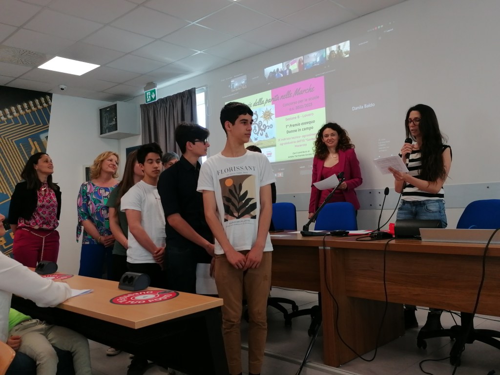 Si interrogano i ragazzi e le ragazze dell’Istituto agrario e interrogano le fonti, quindi, fino ad analizzare la moderna imprenditoria agricola femminile. L’esito di questa ricerca è l’individuazione di Silvia Sabbatini, titolare dell’azienda agraria “I tre Filari” di Recanati (MC), ex studente dell’Istituto Agrario, che si è messa a disposizione della classe, che ha accompagnato a Camerino il 25 maggio 2023 per ritirare il premio. Sabbatini, raccontando ai ragazzi e alle ragazze la sua storia e la sua esperienza come imprenditrice, ha mostrato loro uno spaccato delle difficoltà connesse alla gestione dell’attività in sé, alle numerose disparità di genere che si riscontrano ancora oggi in questo settore, alle procedure e alle modalità di raggiungimento e attuazione degli obiettivi ambientali e climatici fissati dall’Agenda 2030.